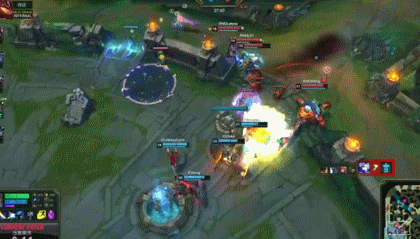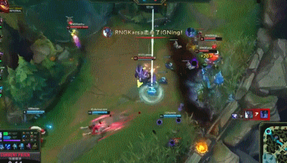 最后一波团战又是石头人一个R闪击飞4人,在先死一人的情况下顺利终结了比赛。