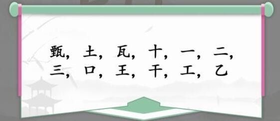 1、甄找出12个常见字依次有:甄、土、瓦、十、一、二、三、口、王、干、工、乙。