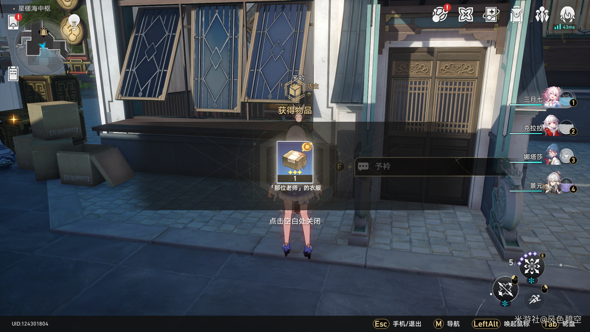 本次宝箱不能直接获取,到星槎海中枢右下角找到广云袖店主,选择过来拿取衣物,再返回流云渡和集装箱中的人对话即可。
