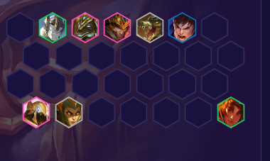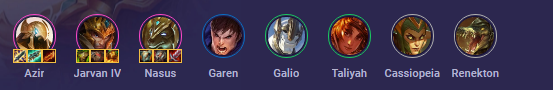 1、阵容成员:沙皇+皇子+狗头+盖伦+加里奥+岩雀+蛇女+鳄鱼