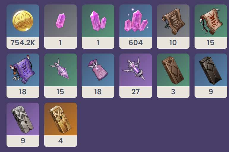 4、遗祀玉珑升级突破材料如下图所示,有需要的玩家可以前往游戏中收集: