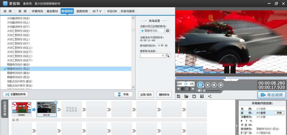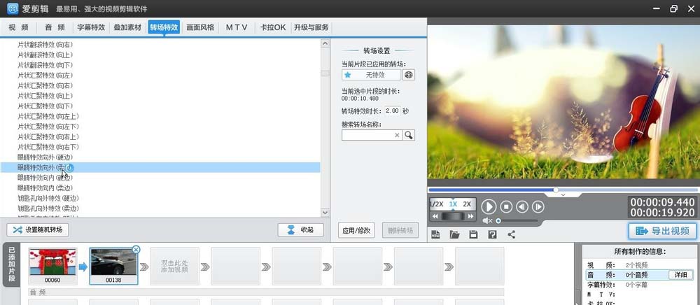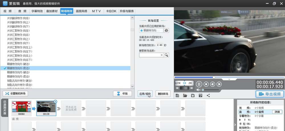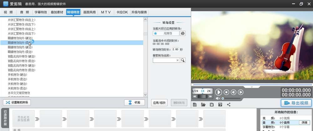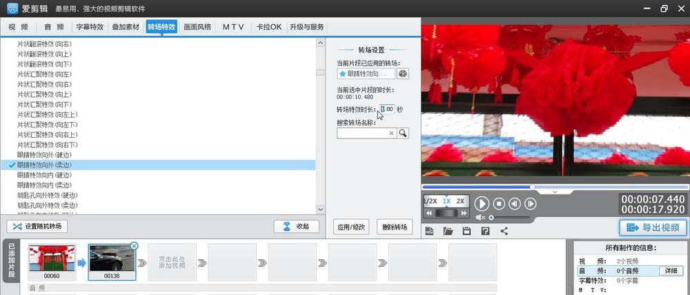 爱剪辑为素材加上柔边眼睛向外转场特效的相关方法