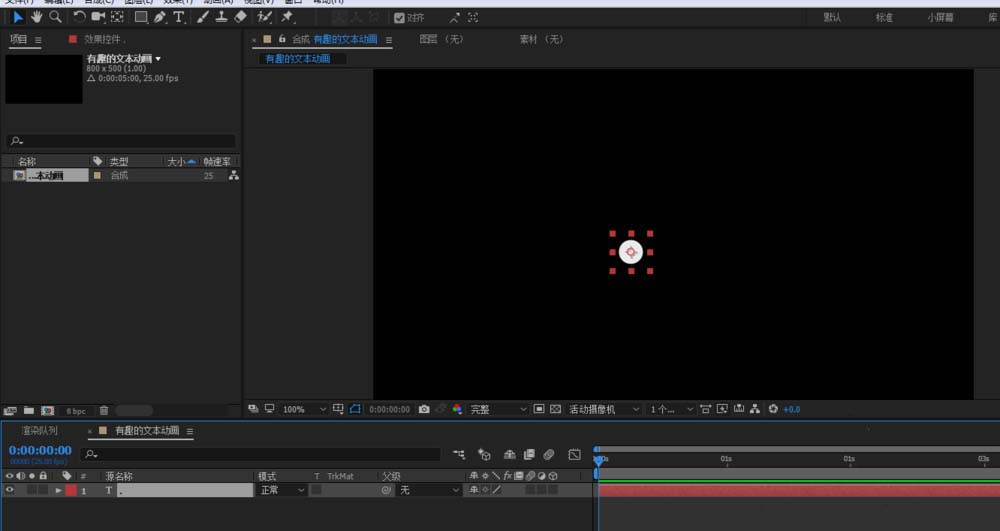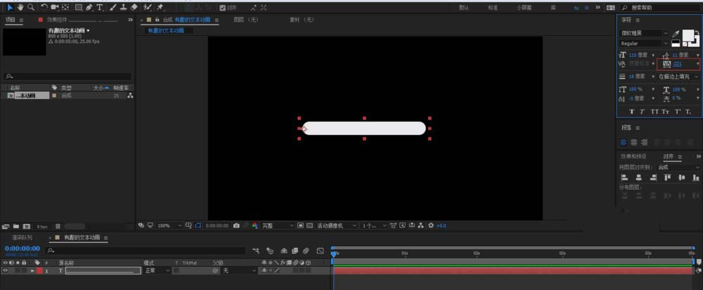 1、打开AE软件,命名有趣的文本动画,调整相应参数。