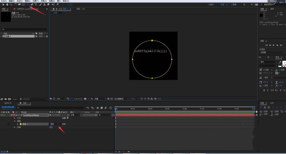 AE制作环形路径文字逐渐变小的效果的使用步骤