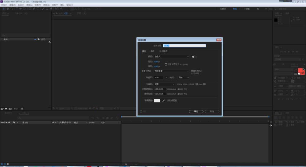 打开AE软件,新建一个合成,合成大小可自定,这里设置1280*1280