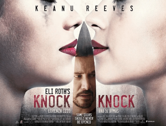 值得一提的是,这并不是安娜与基努的首次合作。他们二人还曾共同出演过于2015年上映的惊悚片《敲敲门》。基努在当时扮演一名普通的家庭妇男“埃文·韦伯”,被雨夜前来借宿的安娜所扮演的年轻辣妹“贝尔”以及她的同伴“吉妮丝”给狠狠折磨,美梦般的生活瞬间化为地狱。