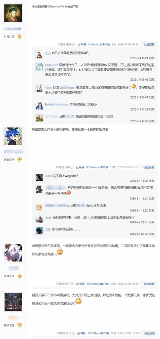 还有其他玩家希望这次是腾讯为宫崎英高的新游戏进行投资,指出“被腾讯投资不是坏事”。