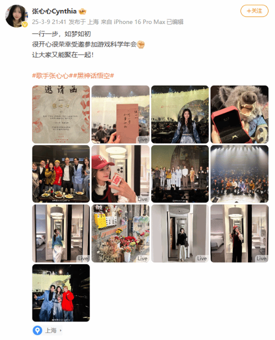 张心心:“一行一步,如梦如初,很开心很荣幸受邀参加游戏科学年会,让大家又能聚在一起!”