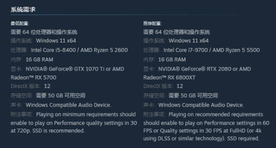 从官方给出的信息来看,最低配置需求需要GTX 1070 Ti或 RX 5700显卡即可游玩,如果想获得较好体验,那么官方推荐至少为 RTX 2080 或 RX 6800XT显卡。此外,据游戏官网下方的虚幻引擎标识来看,本作应该是采用了虚幻5引擎开发,该系列此前的《寂静岭2:重制版》在开发时便已采用了该引擎。