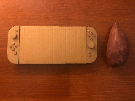 他参考了各种泄露和官方公布的信息,尽力还原了Switch 2的外观设计。从照片中可以看出,这个纸板模型不仅尺寸与预计的Switch 2相仿,而且在细节上也颇为用心。