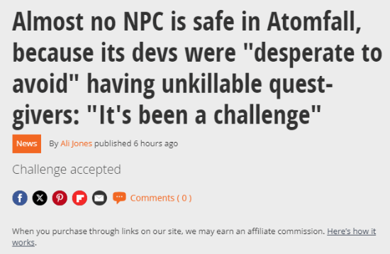 据介绍,《原子陨落》中几乎所有NPC都可以被玩家杀死。开发团队表示,他们“极力避免”让主线任务角色变成无法被攻击的“神圣NPC”,从而确保游戏的沉浸感和自由度。