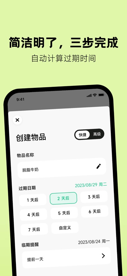 3、应用程序会自动计算出食物的保鲜日期,并在食物快要过期时发送提醒。