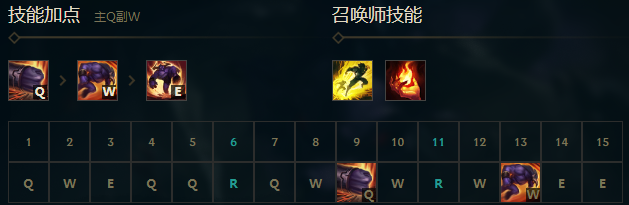 加点推荐:主Q副W点一级E有R点R 召唤师技能:闪现+点燃