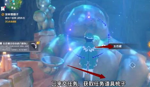 1、找齐三只狸猫后返回五百藏身边,获得一把梳子。