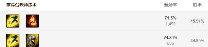 召唤师技能方面,可以选择闪现点燃的进攻套路,也可以选择闪现虚弱的功能性打法。