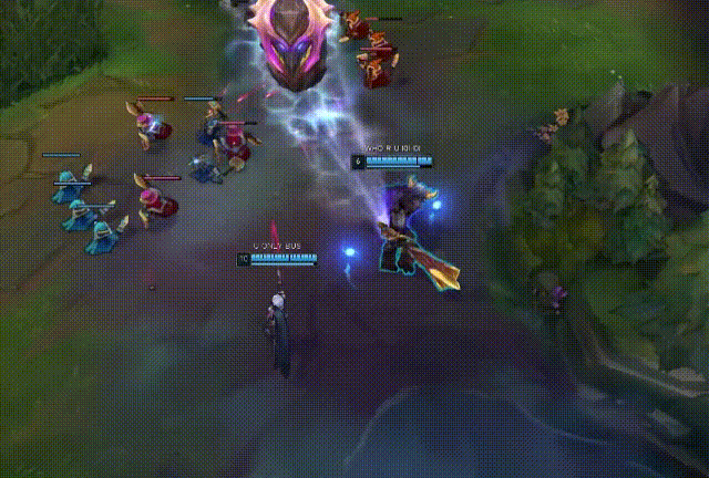 一级团中,一个好的E技能几乎可以算是一个硬控,而且是一个团控,一旦卡在狭窄隘口处,可以将敌方英雄的位置直接限制死,至少可以打出一个召唤师技能。