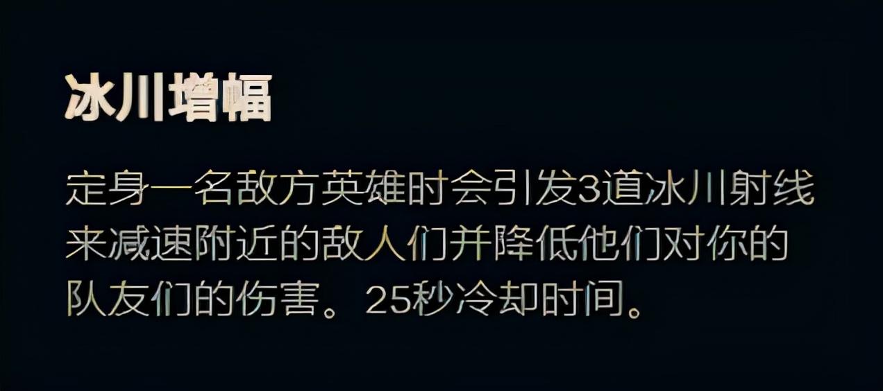 W技能在对线期也可以用于近身,配合E技能加冰川的减速,可以很好的接近对手,即使是坦克型辅助,被巨魔啃一口也是很难受的。