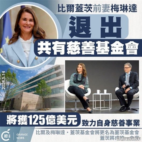 比尔盖茨前妻宣布从盖茨基金会辞职 将带走125亿美元