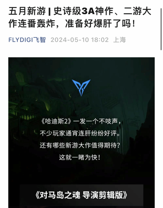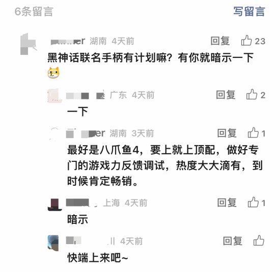 近日,游戏外设品牌飞智在官方公众号发文,介绍了近期即将发布的多款大作。有玩家询问是否有计划和《黑神话:悟空》推出联名手柄,后来该评论被官方翻牌,放在了评论区,也获得不少点赞。似乎暗示官方确实有相关计划。