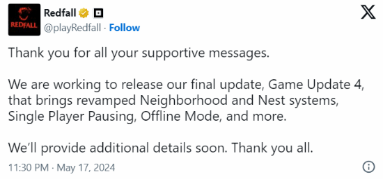 今日,《红霞岛》官推发文确认,他们确实在为游戏开发第四个更新,包括离线模式、单人暂停和一些游戏性改进,很快会为玩家带来详细信息。令人失望的是,该公告没有提及新英雄和通行证。
