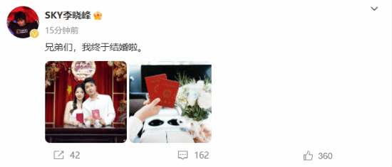 百年好合:“人皇”SKY李晓峰宣布结婚!