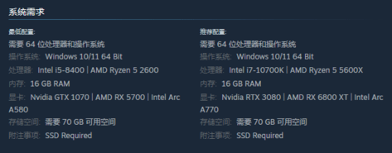 PC配置要求如下: