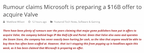 传微软想以160亿美元收购V社 网友:G胖缺你这点?