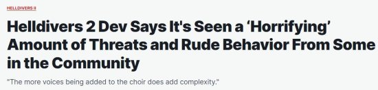 《地狱潜者2》CEO吐槽:游戏遭受的骂声威胁太多了
