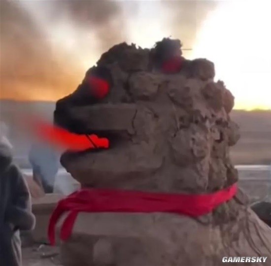 当地工作人员表示这个泥狮子并非因为资金问题而制作粗糙,而是当地一项历史悠久的传统民俗——狮子火的象征。据官方介绍,狮子火习俗已流传多年,每当特定时节,镇上的人们会点燃泥狮子头顶的火焰,泥狮子口眼耳鼻都能喷火,以求在新年火旺、财旺、人也旺。