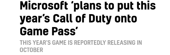 文章称:微软计划对其电子游戏销售策略进行重大调整,在其订阅服务中发布《使命召唤》的新作,而不是采用长期以来利润丰厚的单点销售方式。