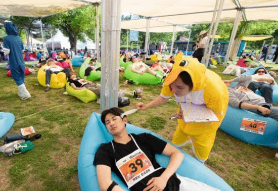 韩国户外举办首届睡觉大赛:比比谁是睡觉大王!