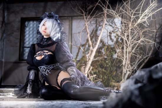 日本美女《尼尔:机械纪元》COS:黑色花嫁2B造型精美