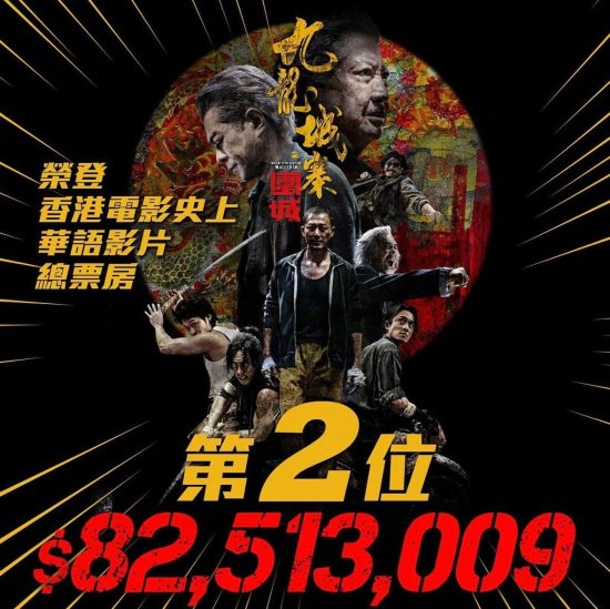 新浪电影报道,《九龙城寨之围城》香港票房已超《明日战记》,升至香港影史华语影片票房TOP2,目前和榜首的《毒舌大状》还差3000多万港币。该片在内地也拿下6.19亿元票房,目前仍在上映中。