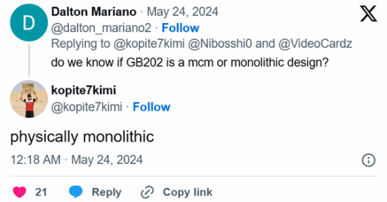 虽然英伟达已经为其HPC/AI芯片(如 B100 和 B200)转向了芯片组设计,但该公司似乎仍希望为其面向消费者的GPU芯片保留单片封装。
