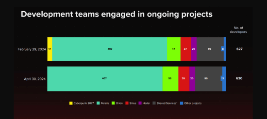 目前,有多达407名开发人员正在全力开发《巫师4》;56人开发《2077》续作;39人开发《巫师》衍生作“sirius”项目。