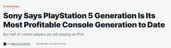目前, PS5游戏机的出货量(5930万台)与PS4生命周期内的出货量(6000万台)大致相当。