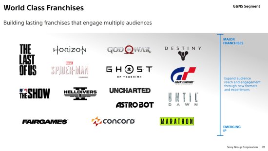 在周三的索尼业务部门会议上,官方公开的演示文稿中展示了索尼对旗下游戏工作室业务领域的划分以及其IP所扮演的角色。