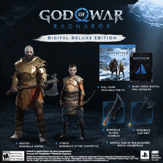 页面显示,该作需要关联第三方账户PSN。游戏的预购以及数字版豪华版奖励也已公开,预购可提前解锁奎爷和阿特柔斯的盔甲,豪华版则包括盔甲、武器、数字艺术集、官方音轨等一系列内容。