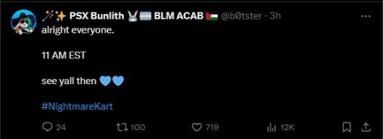 游戏原定于今年1月发布,但此前由于索尼的要求,游戏的名称由《Bloodborne Kart》修改为《Nightmare Kart》,导致团队需要用更多时间修改内容。