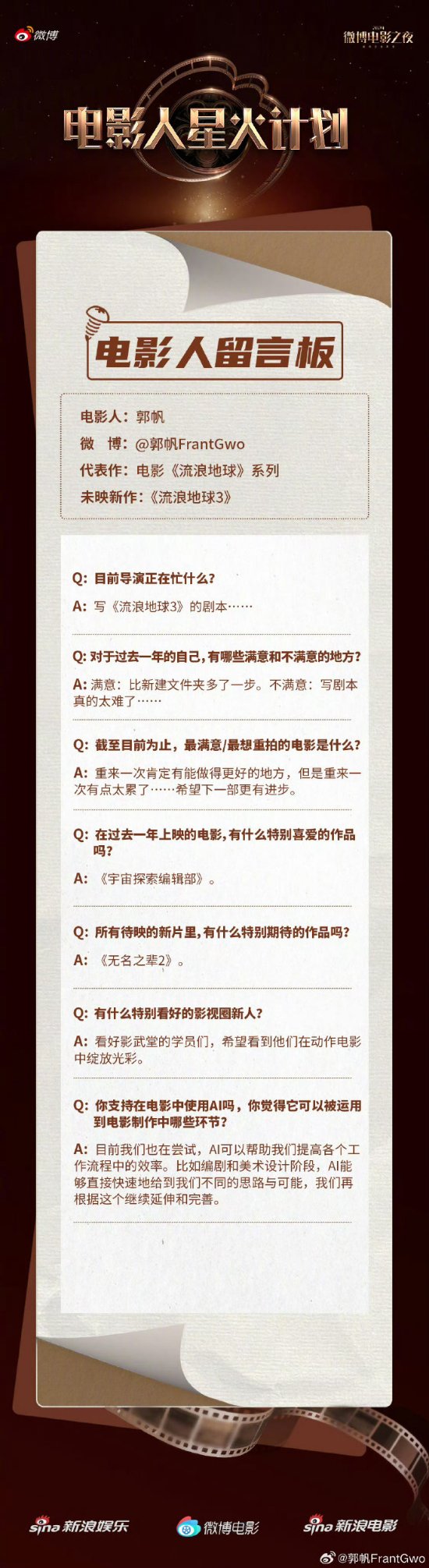 郭帆透露在写《流浪地球3》剧本:进度比新建文件夹强点