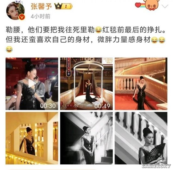 张馨予配文:勒腰,他们要把我往死里勒,红毯前最后的挣扎。但我还蛮喜欢自己的身材,微胖力量感身材。