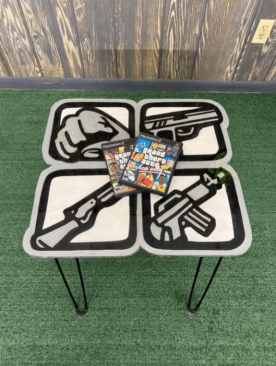 近日,一位玩家自制了一张具有《GTA:圣安地列斯》要素的桌子,可以看到,整张桌子的设计参照了游戏右上角的武器选择图标,看上去非常精美。该玩家还在桌子上放置了PS2版《GTA:罪恶都市》与《GTA:圣安地列斯》的实体盘,我们一起来欣赏一下。