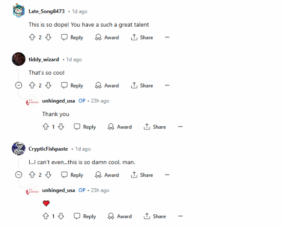 该玩家表示,这张桌子完全是自己手工制作。在Reddit论坛,玩家们纷纷对这张桌子的设计表达了赞美之情,也有玩家甚至表示想要购买这张桌子。