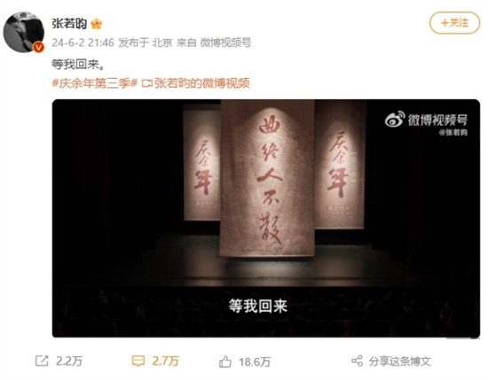 饰演“范闲”的演员张若昀发布视频,提前预告自己在《庆余年》第三季的回归,他表示:“时间过得很快,而它敌不过我们心中温暖的瞬间,等我回来。”在第二季收官之际,饰演“林婉儿”一角的演员李沁发单字“念”告别。
