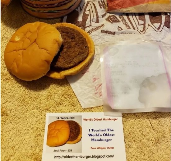 直到2001年,在整理衣服的时候,戴夫本想丢掉这件外套,才意外发现外套口袋里的汉堡,打开时,全家人惊呆了,汉堡就像是刚做出来一样,色泽正常没有腐烂,只有近距离靠近,才能闻到一点点纸板箱的那种气味。