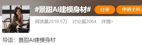 景甜AI建模身材登热搜 本人晒气质美照身材瞩目