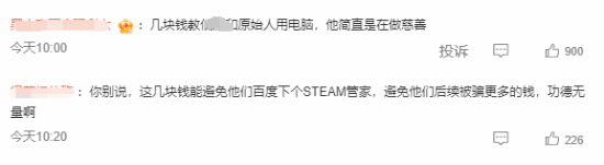 对此,网友普遍好评,直言“几块钱教人用电脑,简直是在做慈善”,“几块钱能避免他们百度下个STEAM管家,避免他们后续被骗更多的钱,功德无量”。