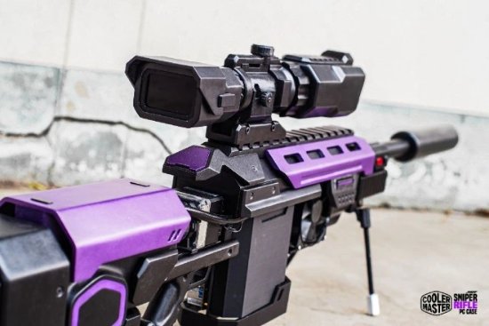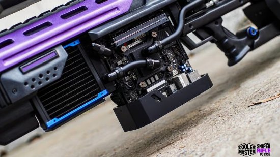这位来自泰国的Juggapat Modifier将机箱改装成了一把反器材狙击步枪的样子,其外观掺杂了各种要素,但轮廓很像现实中的巴雷特M82,并且融入了很多巧思,例如在弹匣位置就安装了水冷散热器,并将ITX主板不着痕迹地安插其中,据其描述,其成本大概为2700美元。