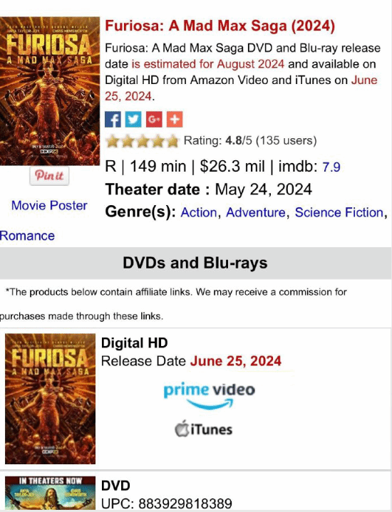 华纳的《疯狂的麦克斯:狂暴女神》已于5月24日在北美上映,IGN也为其打出了10分满分的评价。近日据外媒信息显示,《疯狂的麦克斯:狂暴女神》将在6月25日登陆prime video等流媒体平台,我们一起来看一下。