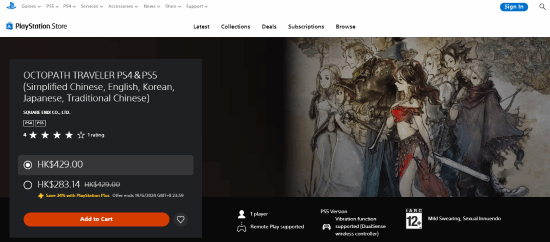 《八方旅人》现已登陆PlayStation,售价429港币(约398元);《八方旅人》+《八方旅人2》同捆包售价563港币(约522元)。